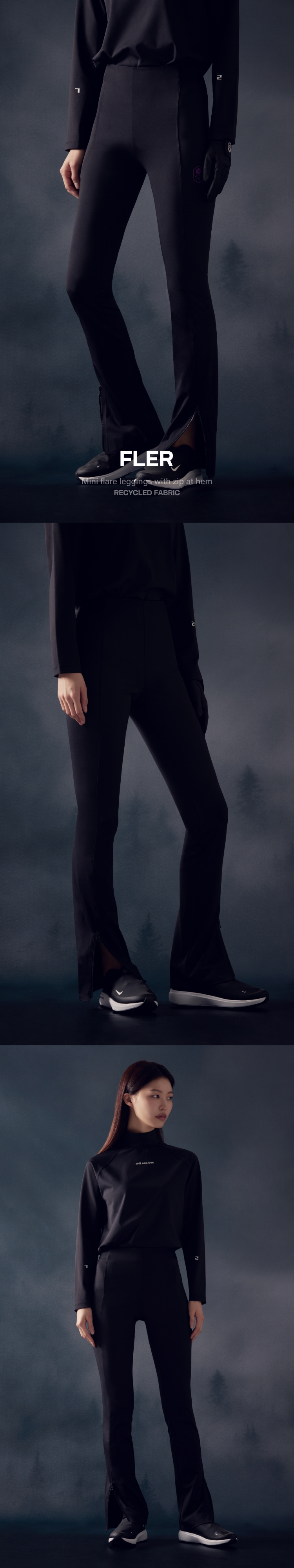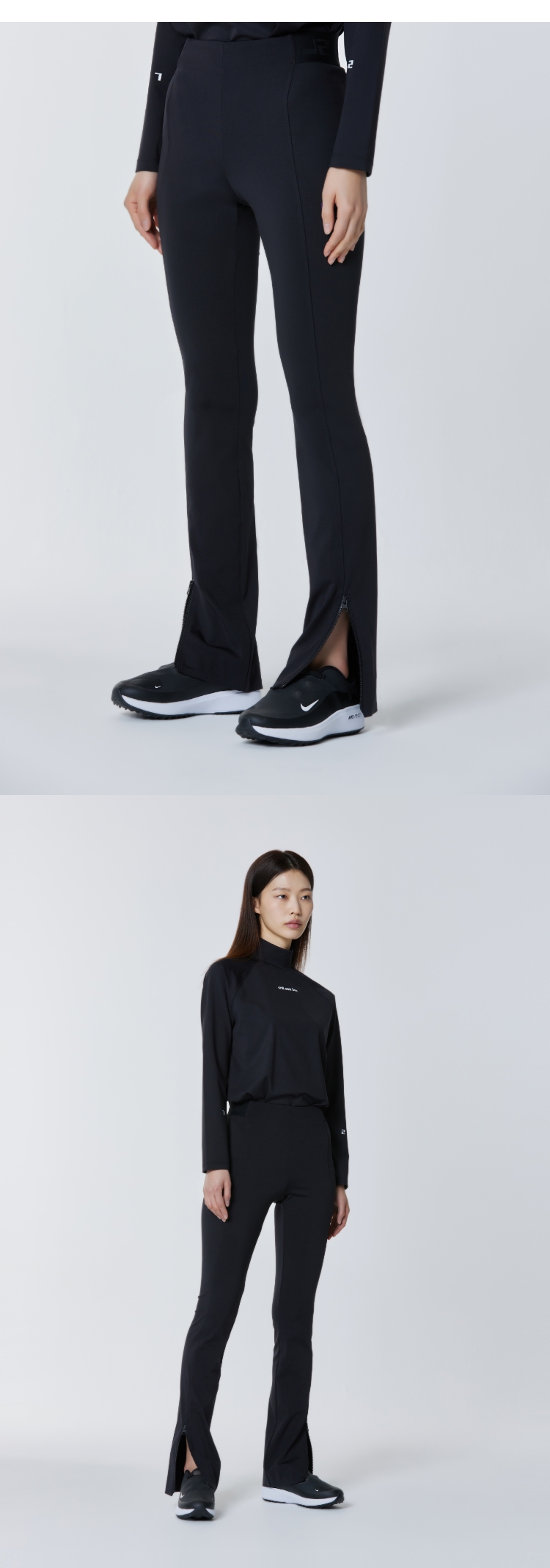 Mini flare leggings with zip at hem.